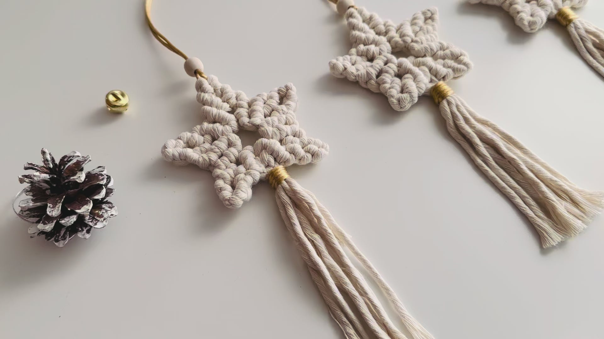 Christmas ornament pack consisting of three macrame stars